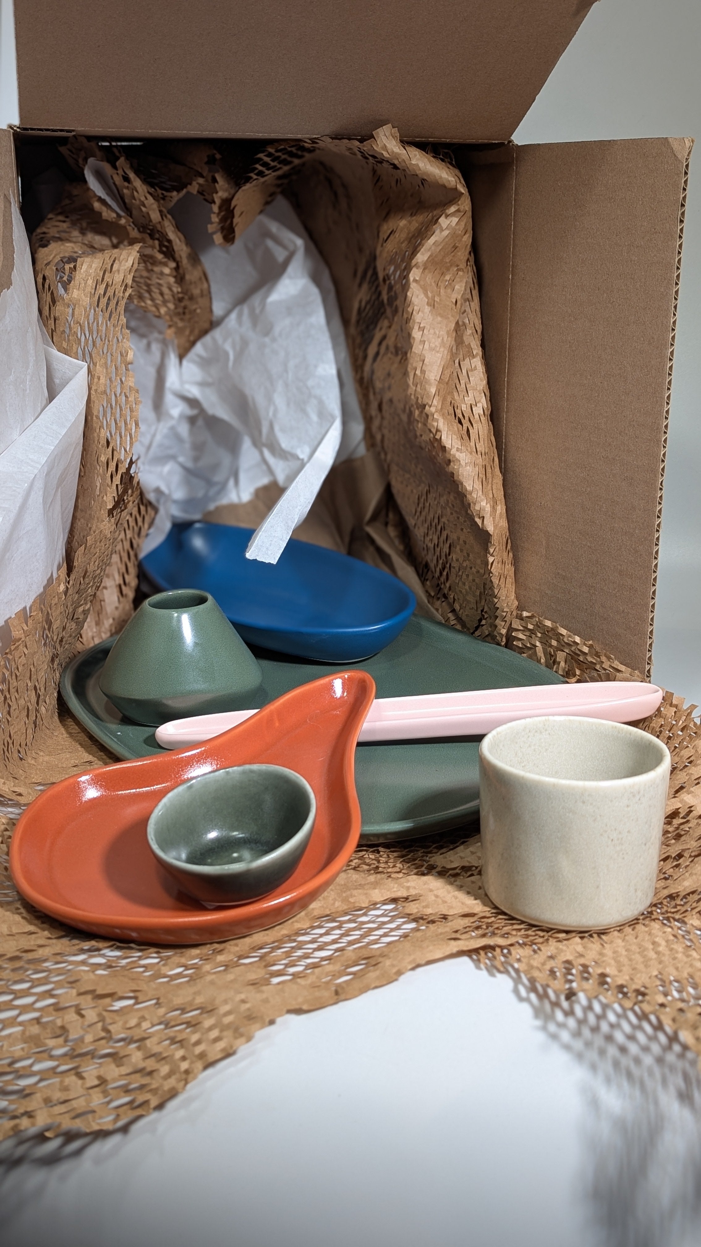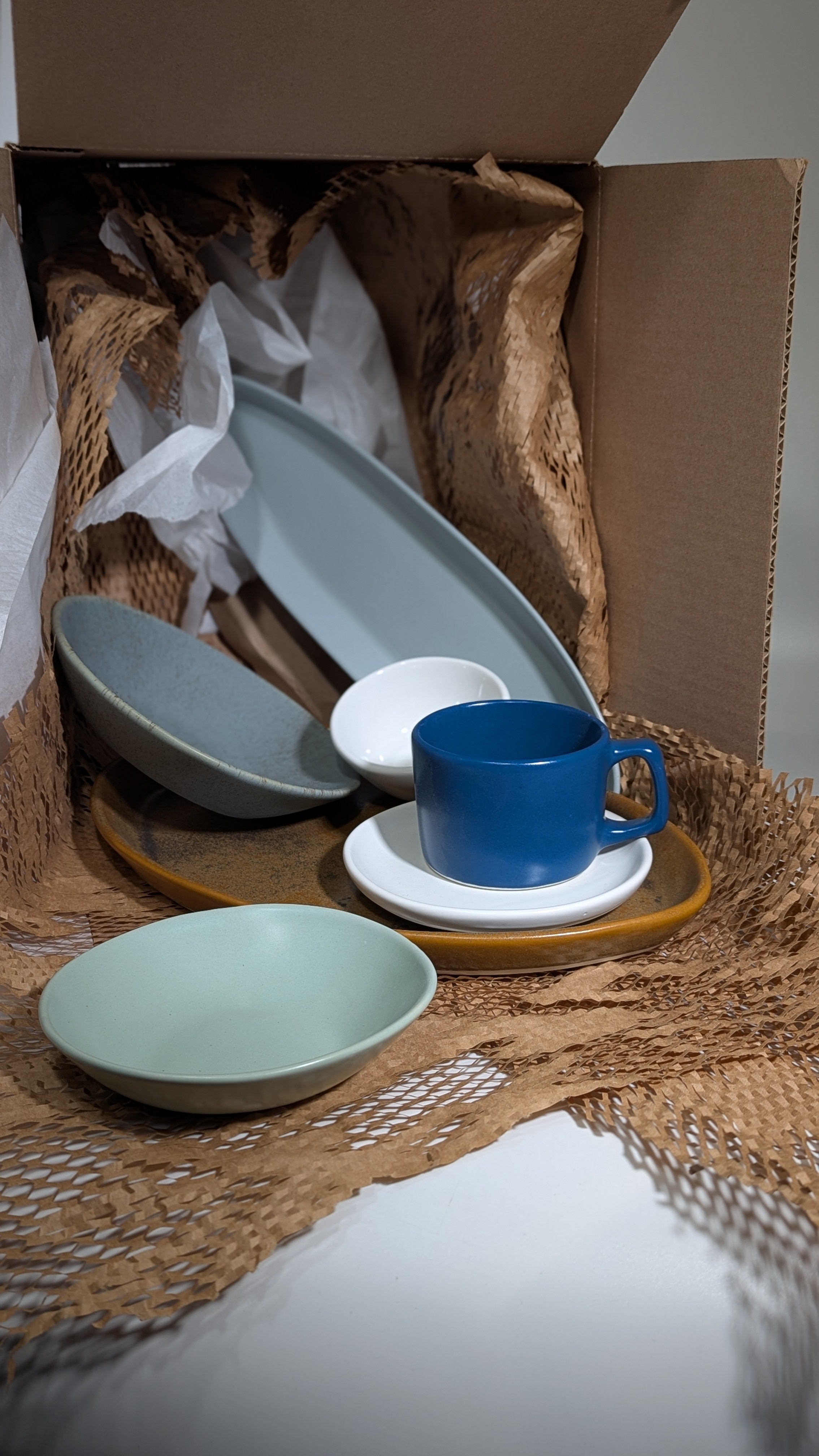 Oh the wonderous, mysterious, surprising Mystery Box. Within, you will find serving pieces, mugs, dinnerware, decor, and more. Pulled from overstock, seconds, and samples, we curate each one of these boxes just for you, and strive to make something that feels cohesive, and most of all, fun!