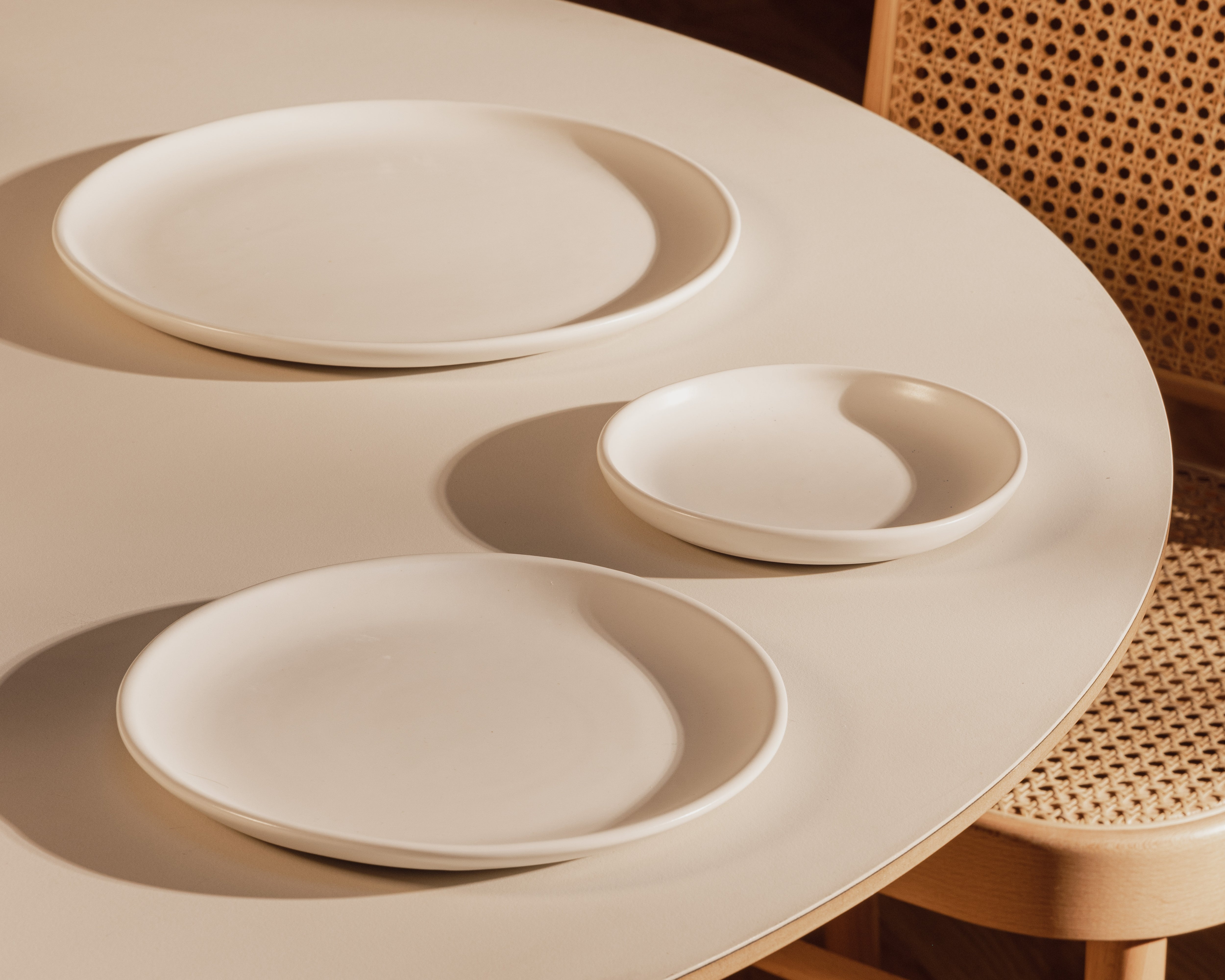 Dare I say, the ideal-sized plate. Big enough for a weeknight dinner, a holiday appetizer or salad. This was the inspiration for the whole Hestia Dinnerware collection, and it nails the balance of a gentle rim to the plating area. When I designed the Dinner and Side plates, they were in conversation with this plate, leading to a harmony throughout the collection.